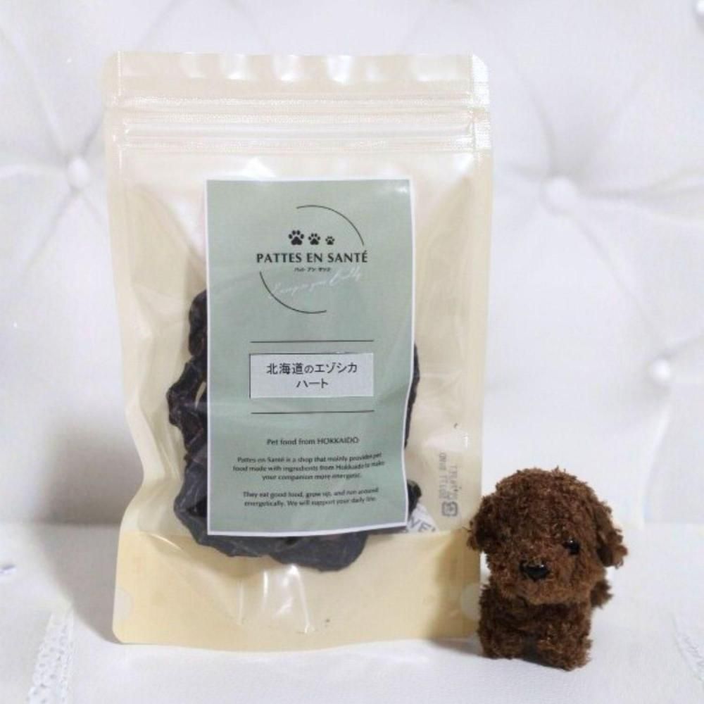 北海道産エゾシカの心臓をスライスし、丁寧に乾燥・加熱殺菌した贅沢なおやつです。