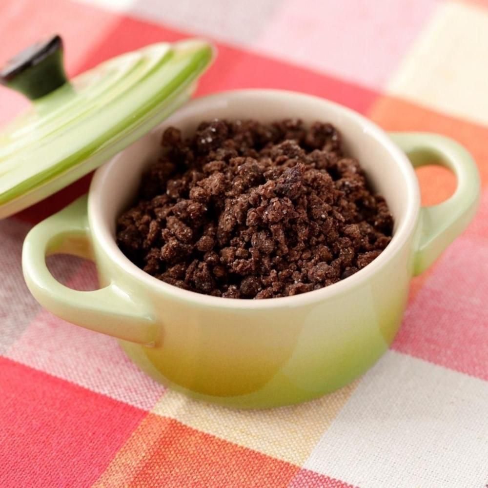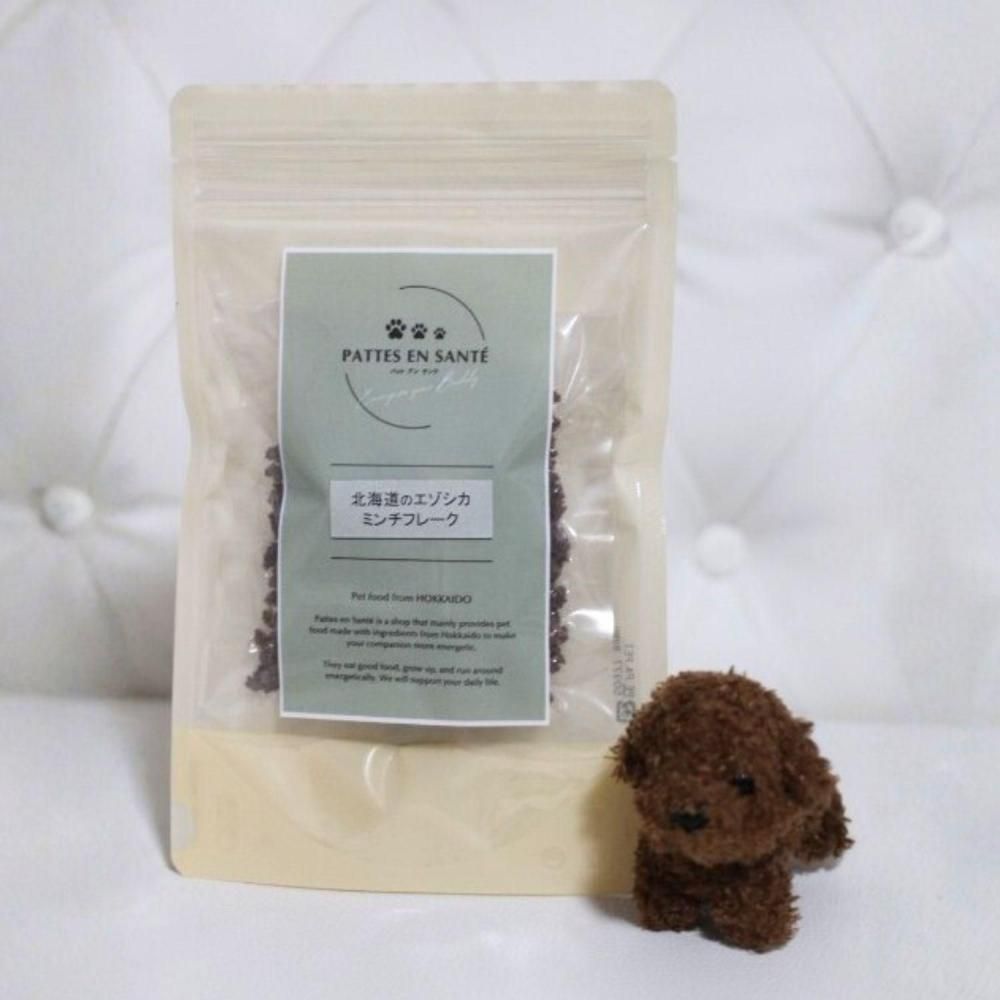 北海道十勝産のエゾ鹿肉100%使用、粗挽きミンチを乾燥・殺菌した安心安全な商品です。