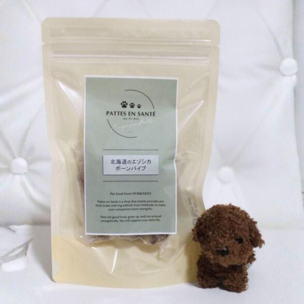 噛むことで歯のケアや口臭対策に役立ち、ストレス発散にもぴったり。カルシウム補給にもなる、愛犬にうれしい鹿骨おやつです。エゾ鹿のあばら骨をカットした後、ボイルして余分な脂を落とし、さらに乾燥・加熱処理を行い衛生的に仕上げています。